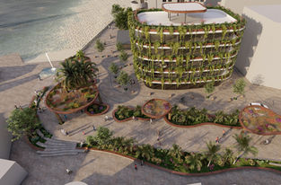 El paseo marítimo contará con nuevo punto de encuentro, descanso y sombra desde el que contemplar el mar. Un oasis de jardineras, pérgolas de flores, bancos y fuentes dentro del casco urbano. Donde el carácter orgánico tanto de las formas como de los elementos constructivos crearán una experiencia única al usuario.