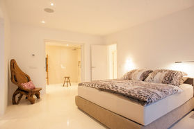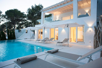 Se elimina la totalidad de los muros interiores de la planta noble para abrir cocina, comedor y salón a las espectaculares vistas a la ciudad de Ibiza.