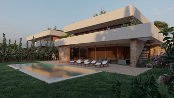 Dos viviendas gemelas ubicadas en la zona posterior de la parcela para crear un gran jardín orientado al sur.